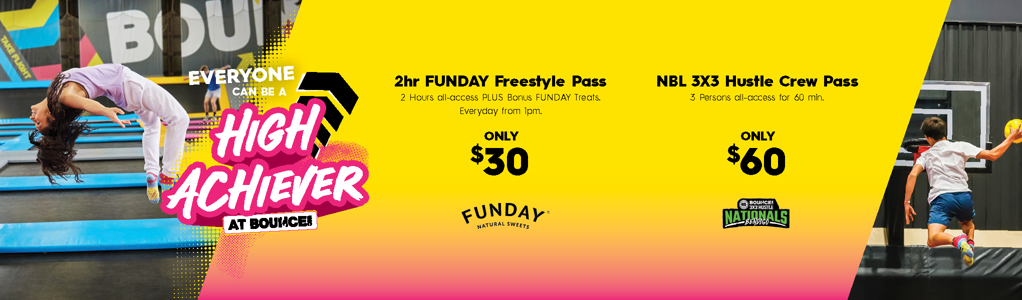 Every Friday 5pm-8pm. Available at all BOUNCE venues (excluding Wodonga and Hobart).